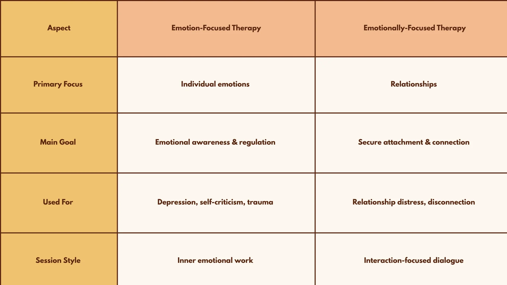 Emotion-Focused Therapy works at the root of emotional responses, not only surface-level symptom management.